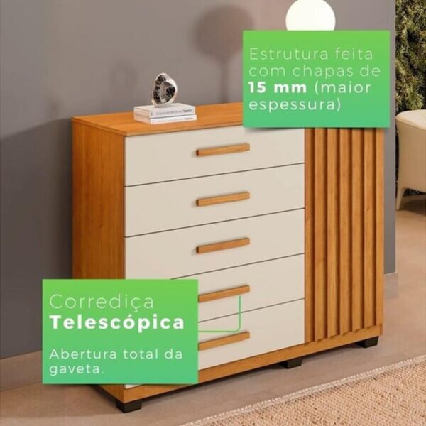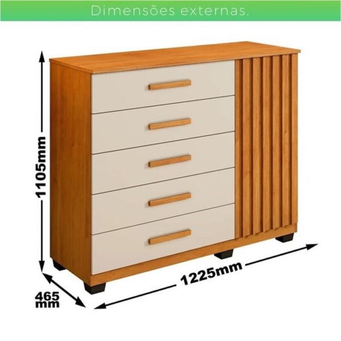 Bm Comoda Paris 5Gvtas C/Sapateira. C/ Ptas Ripadas A.1,10 L.1,22 P.0,46 Cores Variadas