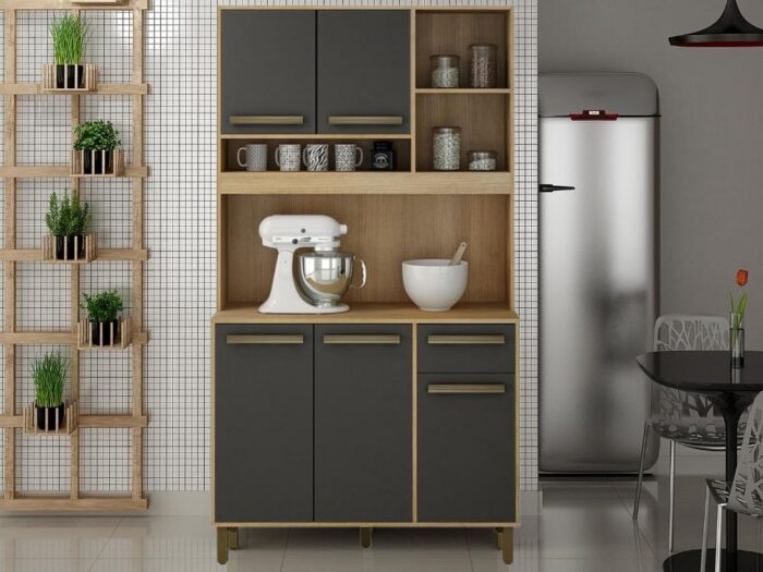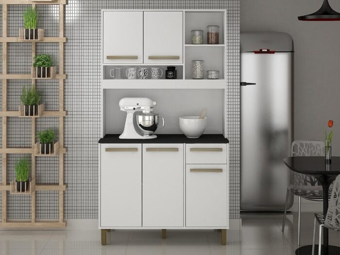 O Armário Kit de cozinha Ametista possui um design moderno e compacto, com puxadores em EPS, ele se destaca por sua praticidade em espaços compactos, com o mesmo padrão de acabamento de alta qualidade, e ainda conta com corrediças telescópicas e um espaço amplo para seus eletrodomésticos ou objetos de decoração.