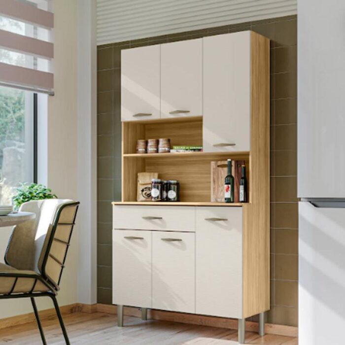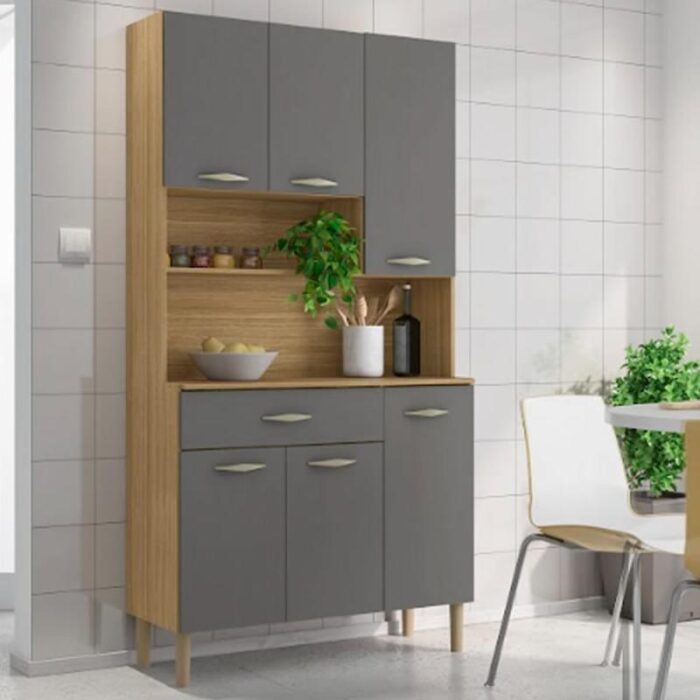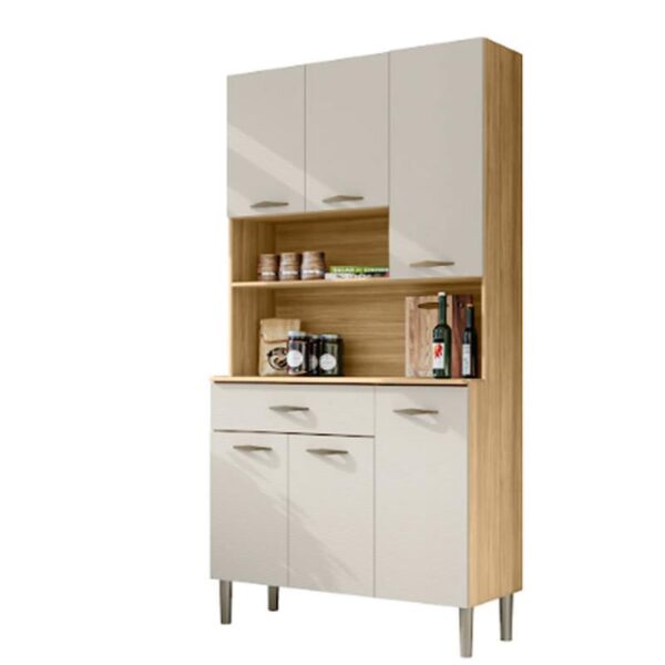 A Cozinha Kit com 6 Portas Apolo é produzido em MDP com portas e gaveta em 15 mm, matéria prima que respeita o meio ambiente. São seis portas, e uma ampla gaveta. Nas portas e gaveta são utilizadas corrediças e dobradiças 100 metálicas para garantir a suavidade e segurança no abrir e fechar. Pés em plástico resistente (polipropileno) . Puxadores ergonômicos em plástico resistente (poliestireno) com otimo acabamento acabamento.